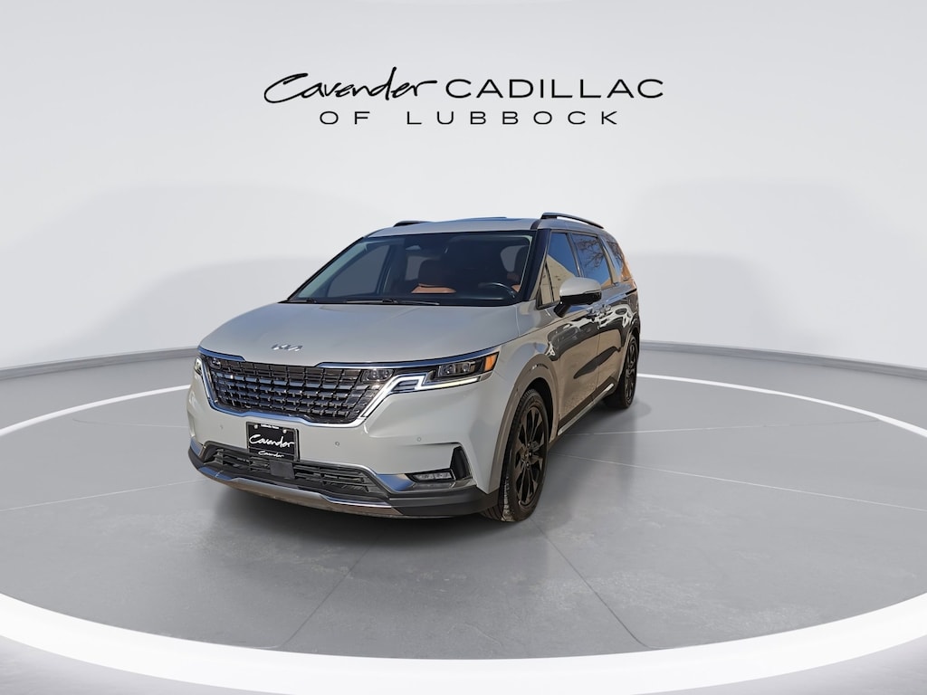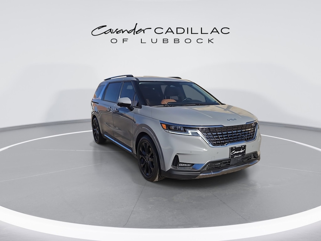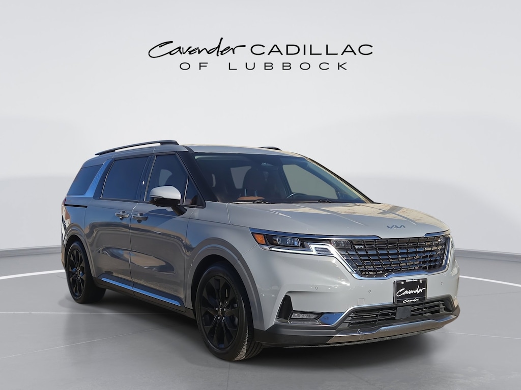 Welcome to Cavender Cadillac of Lubbock, a Cavender Auto Family dealership. This vehicle is located at 1210 19th St, Lubbock, TX 79401. Here at Cavender, we build relationships based on trust and integrity to exceed your expectations in your ownership experience. Quite simply, we strive to Make Confidence Happen! So stop by and allow us to serve your automotive needs; we would love to meet you.Ceramic Silver 2022 Kia Carnival SX Prestige FWD V6 8-Speed AutomaticCavender Certified Pre-Owned Program Built-in Benefits: Limited Powertrain Warranty for your peace of mind. Coverage includes components for engine, transmission and axles (for specific component coverage, please speak with a dealer representative). 24/7 Roadside Assistance No out-of-pocket costs for customers towed to our dealership (if located within 30 miles), lockout assistance, jump start, fuel and fluid delivery, flat tire changes, available 365 days/year, up to $100 maximum coverage per roadside incident. A Vehicle History Report is included with every Cavender Certified Pre-Owned vehicle to offer you Confidence knowing that the vehicle you are purchasing is right for you and the road ahead. (Limitation and exclusions apply. Please refer to your Limited Warranty Registration for full coverage information.) The Cavender Auto Family, proudly serving our communities since 1939, and we look forward to serving you! - Equipment: 12 Speakers, 3.51 Axle Ratio, 3rd row seats: split-bench, 4-way Power Driver's Lumbar Support, 4-Wheel Disc Brakes, 8 Way Power Driver's Seat, 8 Way Power Front Passenger's Seat, ABS brakes, Air Conditioning, Alloy wheels, AM/FM radio: SiriusXM, Apple CarPlay & Android Auto, Auto High-beam Headlights, Auto-dimming Rear-View mirror, Automatic temperature control, Brake assist, Bumpers: body-color, Compass, Delay-off headlights, Driver door bin, Driver vanity mirror, Driver's Seat & Mirrors Memory System, Dual front impact airbags, Dual front side impact airbags, Electronic Stability Control, Emergency communication system: UVO eServices, Four wheel independent suspension, Front anti-roll bar, Front Bucket Seats, Front Center Armrest, Front dual zone A/C, Front fog lights, Front reading lights, Fully automatic headlights, Garage door transmitter: HomeLink, Heated & Ventilated Front Bucket Seats, Heated door mirrors, Heated front seats, Heated rear seats, Heated steering wheel, Illuminated entry, Interior Light Kit, Knee airbag, Leather Shift Knob, Leather steering wheel, Low tire pressure warning, Memory seat, Navigation system: UVO eServices, Occupant sensing airbag, Outside temperature display, Overhead airbag, Overhead console, Panic alarm, Passenger door bin, Passenger vanity mirror, Power 2nd-Row Moonroof, Power door mirrors, Power driver seat, Power Liftgate, Power moonroof, Power passenger seat, Power steering, Power windows, Pure Leather Seat Trim, Radio: AM/FM/HD Audio System, Rear air conditioning, Rear anti-roll bar, Rear reading lights, Rear window defroster, Rear window wiper, Reclining 3rd row seat, Remote keyless entry, Roof rack: rails only, Security system, Speed control, Speed-sensing steering, Split folding rear seat, Spoiler, Steering wheel mounted audio controls, Tachometer, Telescoping steering wheel, Tilt steering wheel, Tow Hitch (PNP), Traction control, Trip computer, Turn signal indicator mirrors, Variably intermittent wipers, Ventilated front seats, Ventilated rear seats, and Wheels: 7.5J x 19 Black Painted Alloy.Odometer is 14083 miles below market average! CARFAX One-Owner.