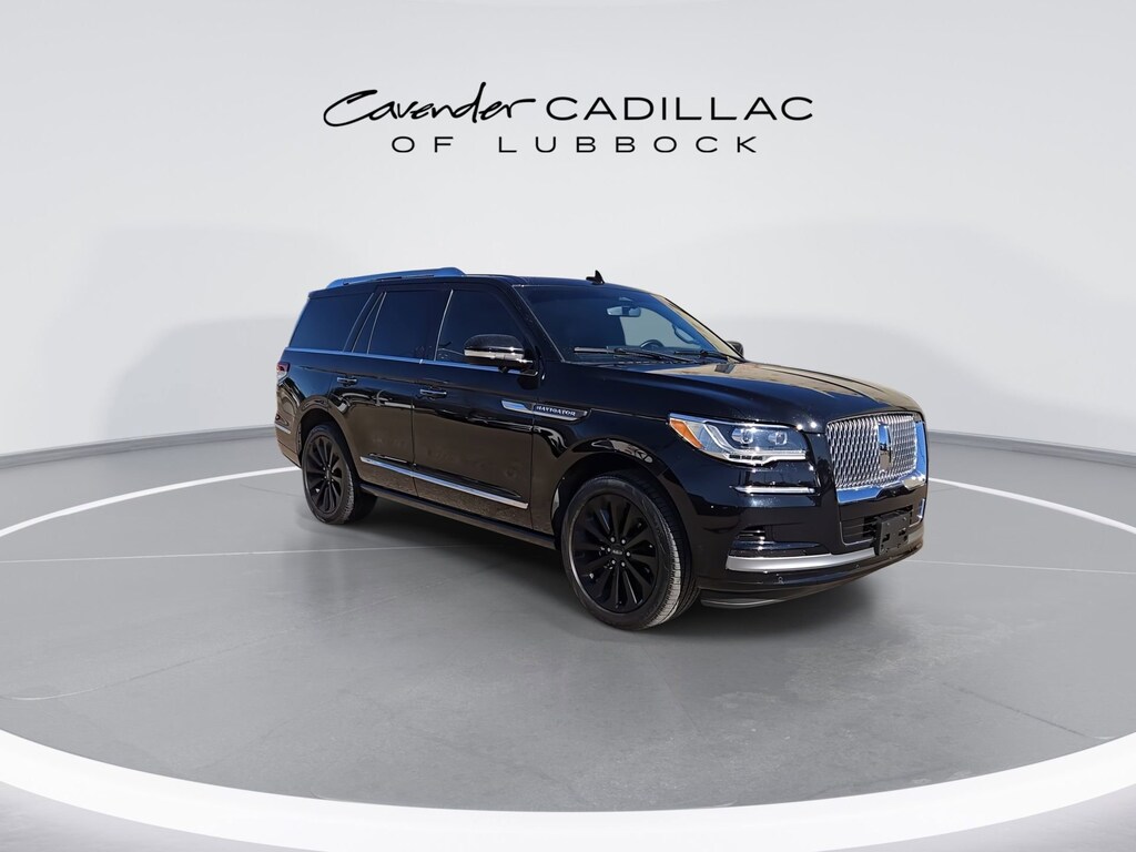 Welcome to Cavender Cadillac of Lubbock, a Cavender Auto Family dealership. This vehicle is located at 1210 19th St, Lubbock, TX 79401. Here at Cavender, we build relationships based on trust and integrity to exceed your expectations in your ownership experience. Quite simply, we strive to Make Confidence Happen! So stop by and allow us to serve your automotive needs; we would love to meet you.Infinite Black Metallic Clearcoat 2023 Lincoln Navigator Reserve 4WD V6 10-Speed AutomaticCavender Certified Pre-Owned Program Built-in Benefits: Limited Powertrain Warranty for your peace of mind. Coverage includes components for engine, transmission and axles (for specific component coverage, please speak with a dealer representative). 24/7 Roadside Assistance No out-of-pocket costs for customers towed to our dealership (if located within 30 miles), lockout assistance, jump start, fuel and fluid delivery, flat tire changes, available 365 days/year, up to $100 maximum coverage per roadside incident. A Vehicle History Report is included with every Cavender Certified Pre-Owned vehicle to offer you Confidence knowing that the vehicle you are purchasing is right for you and the road ahead. (Limitation and exclusions apply. Please refer to your Limited Warranty Registration for full coverage information.) The Cavender Auto Family, proudly serving our communities since 1939, and we look forward to serving you! - Equipment: Equipment Group 201A Reserve I, Heavy-Duty Trailer Tow Package (26mm Radiator, Class IV w/4-Pin & 7-Pin Connectors, Electronic Traction Assist (eLSD), Front Tow Hooks, Pro-Trailer Backup Assist 2.0, Smart Trailer Tow, Tiered Cargo Area Management System, Trailer Brake Controller, and Trailer Sway Control), Luxury Package (Illuminated 1st & 2nd Row Seat Belts, Lincoln Lit Star in Grille, Perfect Position Seats (30-Way) w/Active Motion, and Radio: Revel Ultima 3D Audio System w/28 Speakers), 4WD, Black Onyx w/Prem Lthr Auto Htd/Ventiltd Perfect Position Seats, 14 Speakers, 2nd Row Htd/Vent Enhanced Massage Seats w/Console, 3.73 Axle Ratio, 3rd row seats: split-bench, 4-Wheel Disc Brakes, ABS brakes, Active Park Assist 2.0 Delete, Adaptive suspension, Adjustable pedals, Air Conditioning, All-Weather Floor Liners w/Carpet Floor Mats, Alloy wheels, AM/FM radio: SiriusXM with 360L, Audio memory, Auto High-beam Headlights, Auto Start-Stop Technology, Auto tilt-away steering wheel, Auto-dimming door mirrors, Auto-dimming Rear-View mirror, Auto-leveling suspension, Automatic temperature control, Bodyside moldings, Brake assist, Bumpers: body-color, Compass, Delay-off headlights, Driver door bin, Driver vanity mirror, Driver's Seat Mounted Armrest, Dual front impact airbags, Dual front side impact airbags, Electronic Stability Control, Emergency communication system: 911 Assist, Exterior Parking Camera Rear, Four wheel independent suspension, Front anti-roll bar, Front Bucket Seats, Front dual zone A/C, Front fog lights, Front reading lights, Fully automatic headlights, Garage door transmitter, Genuine wood dashboard insert, Genuine wood door panel insert, Hands-Free Liftgate Delete, Head restraints memory, Heads-Up Display, Heated door mirrors, Heated front seats, Heated rear seats, Heated steering wheel, HVAC memory, Illuminated entry, Leather steering wheel, Low tire pressure warning, Memory seat, Navigation system: Connected Navigation (3-year trial), Occupant sensing airbag, Outside temperature display, Overhead airbag, Overhead console, Panic alarm, Passenger door bin, Passenger seat mounted armrest, Passenger vanity mirror, Pedal memory, Power adjustable rear head restraints, Power door mirrors, Power driver seat, Power Liftgate, Power moonroof: Panoramic Vista Roof, Power passenger seat, Power steering, Power windows, Prem Lthr Auto Htd/Ventiltd Perfect Position Seats, Radio data system, Radio: Revel AM/FM/HD/MP3 Audio System, Rain sensing wipers, Rear air conditioning, Rear anti-roll bar, Rear audio contr